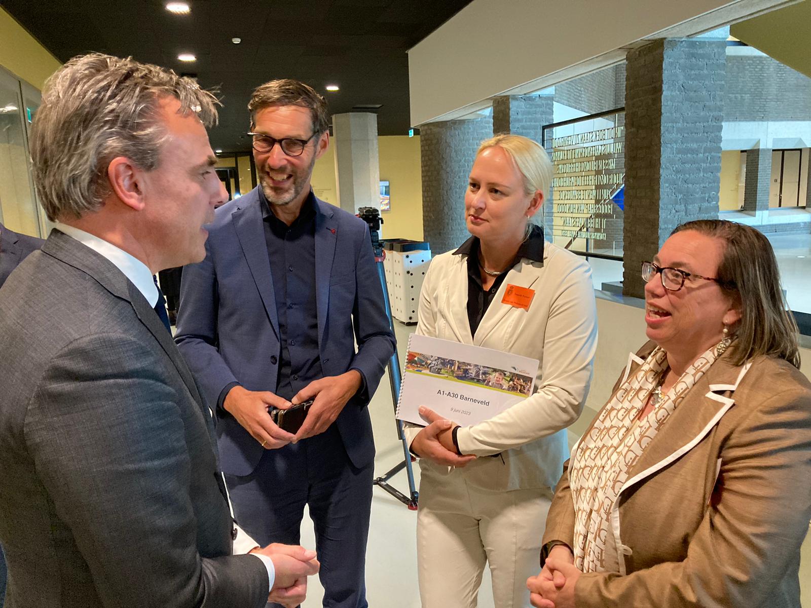 Voorafgaande aan het debat bracht wethouder Hartman (foto: rechts) bij minister Harbers (foto: links) de problematiek van de A2 – en de noodzaak om deze tussen Deil en Vught te verbreden – onder de aandacht.