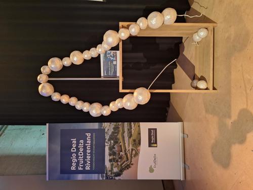 17 november sloten we de Regio Deal samen af en vierden we de resultaten. In de Gelderlandfabriek kwamen we met projectleiders, bestuurders en andere betrokkenen samen om resultaten te ervaren, parels te rijgen en samen het glas te heffen. Mérie van Zandwijk-Rijnberk maakte voor ons een prachtig kunstwerk dat die resultaten symboliseert.