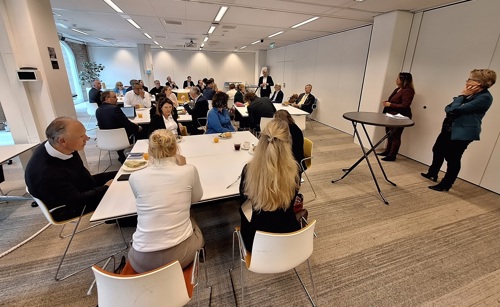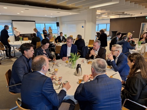 Wij startten het bezoek, na een voorspoedige busreis die werd verzorgd door Krol Reizen uit Tiel, met een ontbijtbijeenkomst met Michel Visser, directeur Bestuur, Financiën en Regio’s, Natalie Burgers, Programmadirecteur Regio Deals en met dealmaker Willemien Vreugdenhil van het Ministerie van Binnenlandse Zaken. Wij spraken over de samenwerking tussen rijk en regio en hoe wij die samenwerking de komende periode kunnen versterken. Het leverde een aantal mooie ‘kapstokjes’ op om het gesprek de komende tijd voort te zetten.