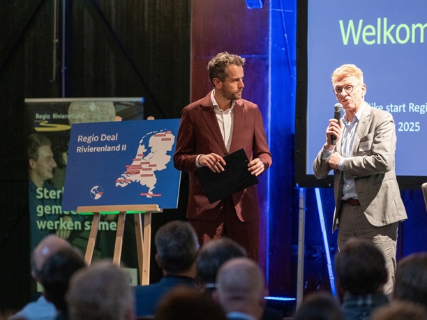 Op donderdagmiddag 20 november vond de aftrap van Regio Deal FruitDelta Rivierenland plaats. Met deze Regio Deal investeren het Rijk, de Provincie, maar vooral partners uit de regio zelf de komende jaren gezamenlijk ruim 45 miljoen euro om Toekomstbestendig Wonen, Ondernemen en Leven in de regio in een stroomversnelling te brengen.