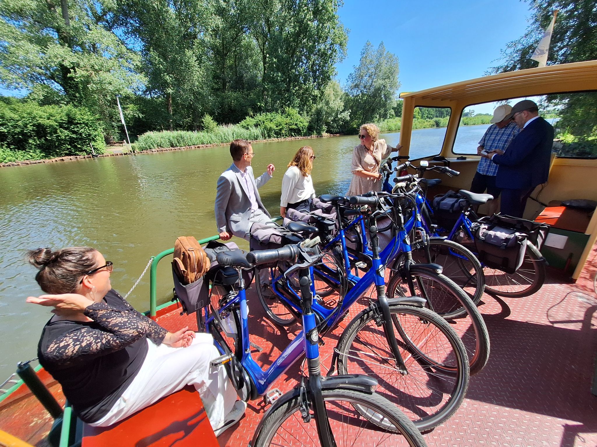 Via het fietsveer staken wij de Linge over en reden over het Landgoed Heerlijkheid Mariënwaerdt naar De Stapelbakker en genoten hier van een heerlijke streeklunch waarbij ook burgemeester Jan Kottelenberg van Neder-Betuwe aansloot.